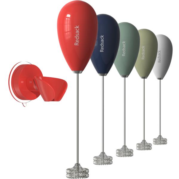 This milk frother is a small yet powerful device that is capable of producing rich and creamy froth in just a few seconds. With a power of 3W, it is energy-efficient and easy to use. The frother comes in five different colors - white, red, navy blue, olive green, and teal - allowing you to choose one that matches your kitchen or office decor.